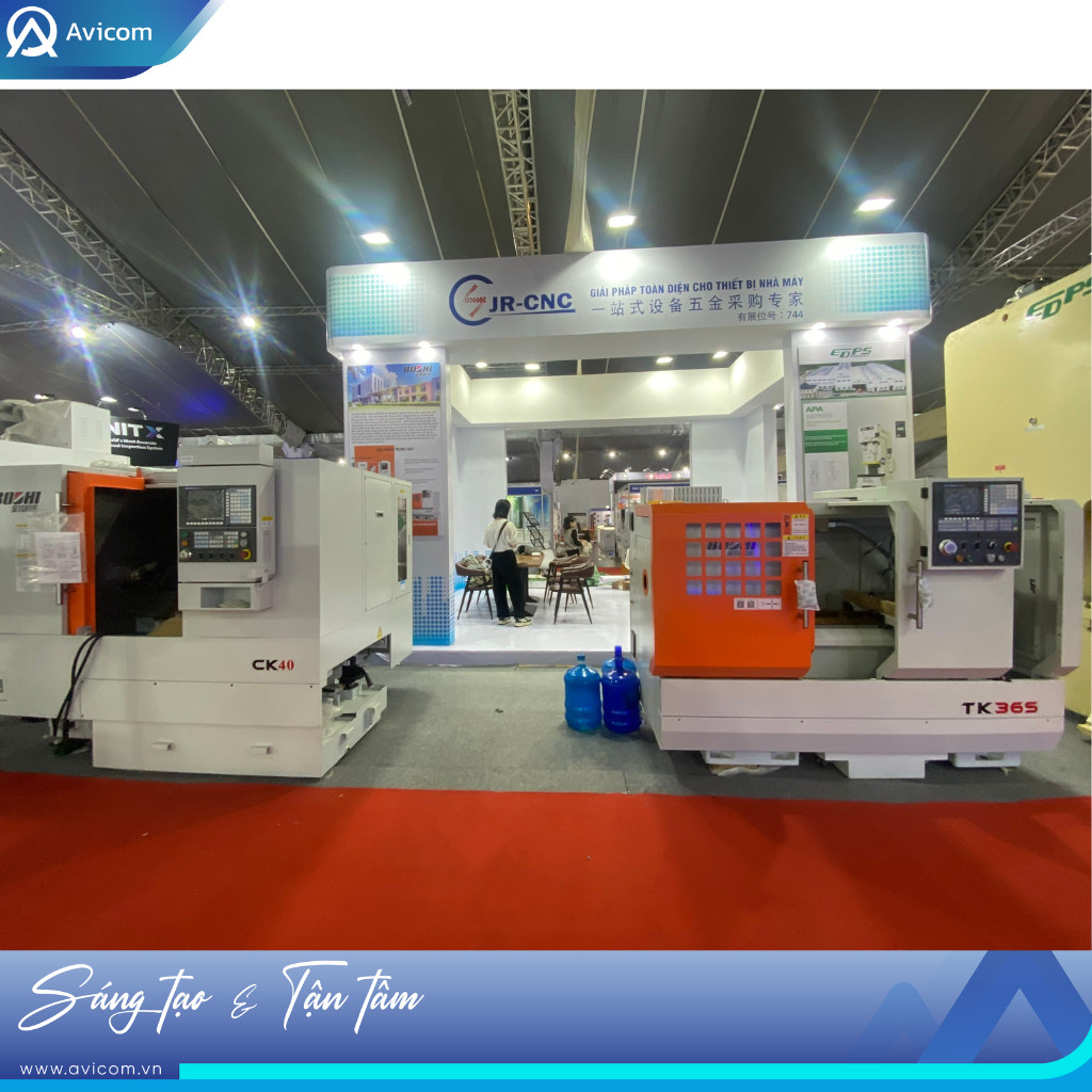 Với triết lý “không gian phải mang được tinh thần của công nghệ”, Avicom đã biến gian hàng JR-CNC thành một mô phỏng thu nhỏ của một xưởng CNC công nghiệp thực tế, nơi thiết bị được vận hành trực tiếp, dữ liệu được trình diễn, trao đổi kỹ thuật diễn ra mở và tự nhiên như đang đứng ngay trong nhà máy.