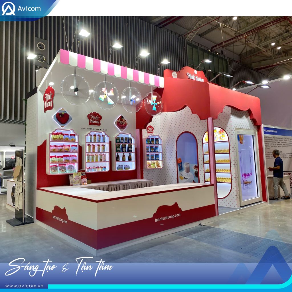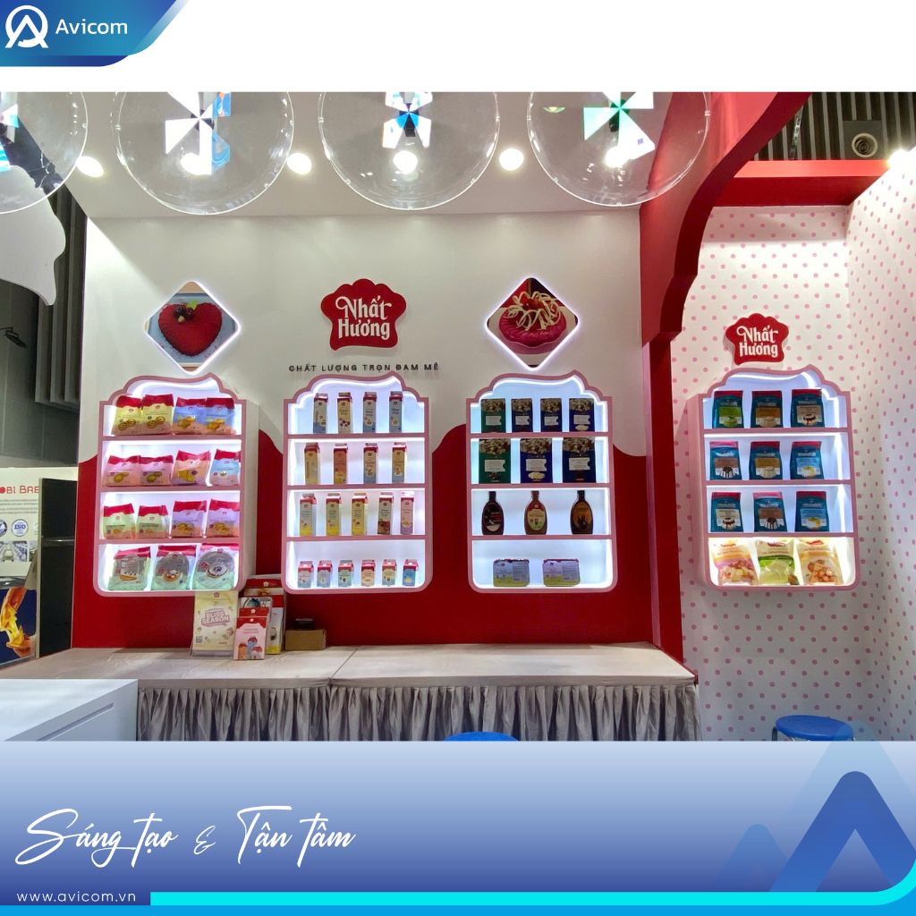 Tại VIBS 2025, Nhất Hương đặt mục tiêu tạo nên một không gian triển lãm không chỉ đẹp mắt mà còn truyền tải được tinh thần “ngọt lành trọn đam mê” – giá trị cốt lõi mà thương hiệu đã theo đuổi trong suốt hành trình phát triển. Avicom vinh dự đồng hành cùng Nhất Hương trong dự án này, từ khâu thiết kế đến thi công, để kiến tạo nên một gian hàng mang chiều sâu trải nghiệm, nơi khách tham quan có thể cảm nhận được cảm xúc thương hiệu ngay từ ánh nhìn đầu tiên.